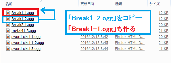 なので同じ内容の「Break1-2.ogg」をコピーして「Break1-1.ogg」をここに作ります。
